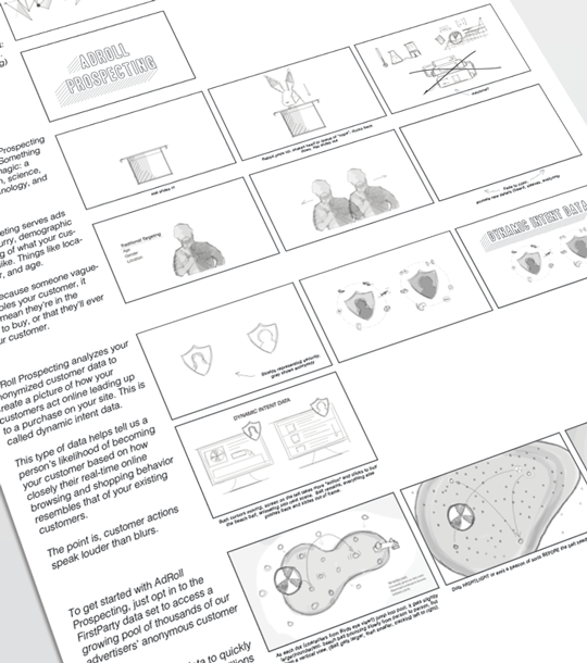 Directed and illustrated this launch video for AdRoll Prospecting, a brand new way of reaching new sets of customers through AdRoll's platform. With Prospecting, customers can serve targeted ads based on real-time intent data.