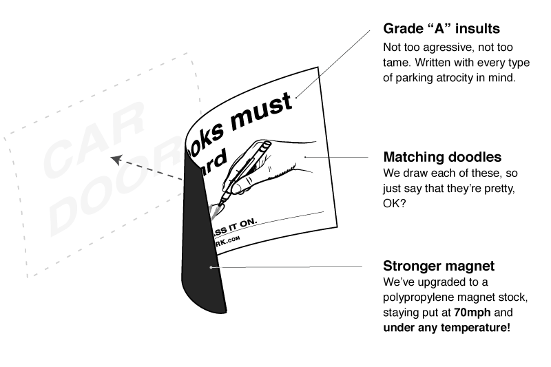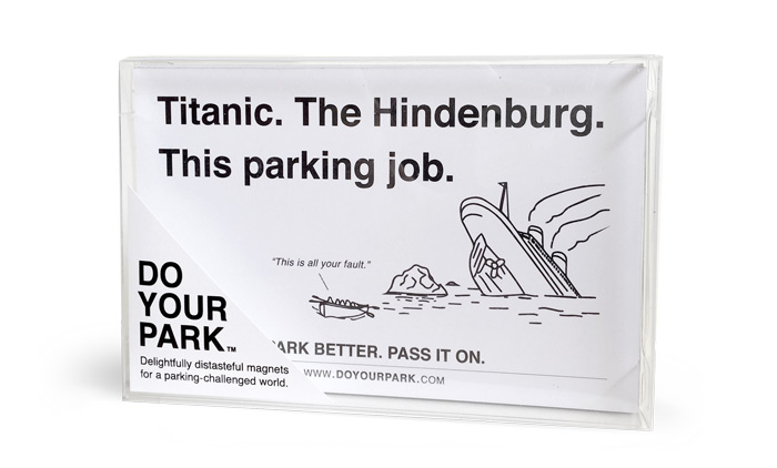 Delightfully-distasteful magnets for a parking-challenged world.